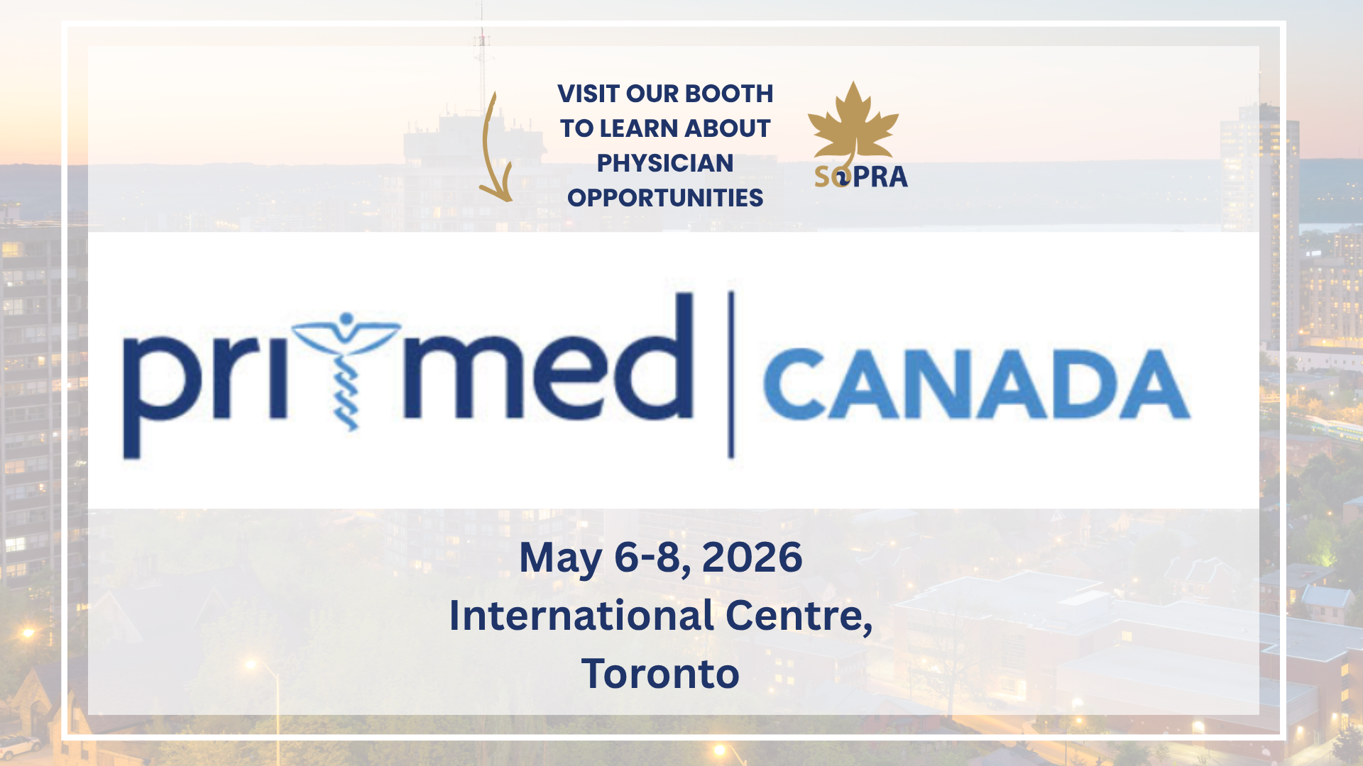 SOPRA is heading to Pri-Med Canada 2026 in Toronto, May 6–8.